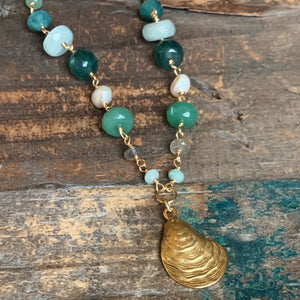 Chesapeake Necklace | Green Gemstones and Pearls with Oyster Pendant